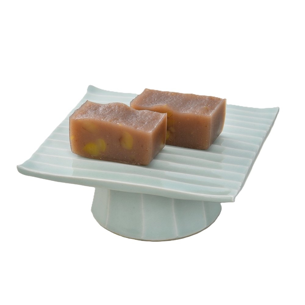 小豆こしあんや小麦粉などに、栗あんと栗粒を合わせた独創の蒸し羊羹です。モッチリとした中にも滑らかな食感、あんと栗が調和する上品な甘さが特徴。